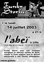 Comme vous l’avez sûrement remarqué, Funkystorm jouera pour cette grande fête qu’est le 14 juillet, à partir de 21h à l’Abeï à Lille. Si le temps nous le permet, le concert aura lieu en extérieur, devant le café (boulevard de la Liberté).